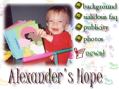 I am William C. Skojec and I would like to introduce you to a very special person, my son Alexander. His name means “helper of mankind,” and I am hoping that this will be his legacy. You see, Alex was diagnosed with Sialidosis, Type II shortly before his first birthday. Physicians tell us this disorder will likely end his life in childhood, before he experiences many of the joys of boyhood. It will not do so gently, but will instead be cruel in taking things away from him before he dies. I am hopeful, that Alex’s life, and those of other children like him, will serve to bring changes in medicine and public policy so that others will not suffer as we have.