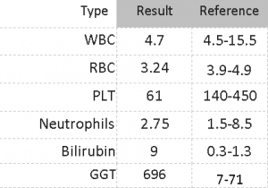 Robert’s liver/kidney function numbers trended down and one up. His GGT went from 993 to 696; his AST and ALT were both in the normal range; the bad news being that his bilirubin went from 7.1 to 9.0. The bilirubin had been stable for two days and then moved upwards. The other bad news is that Robert still has a lot of diarrhea with blood in his stools. The good news is he is still able to urinate (he is going to read all these reports when he is a teenager and have a fit that I added all his bodily functions into this diary). The bad news is he spiked a fever around 1:00 a.m. and went as high as 39.4 (the cooling pad went back under him).
