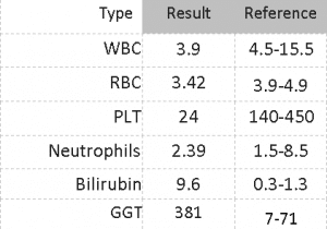 Robert had fevers most of the day. This was unusual; most of his fevers have been at night. He felt pretty miserable all day. The only number that looked worse today was bilirubin. Dr. Lieuw said the bilirubin could have been high because Robert had a red blood transfusion early in the morning yesterday.